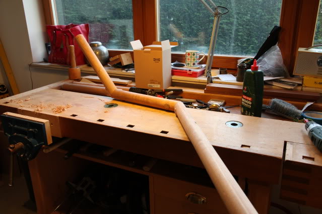 I had trouble sourcing a 50mm round section cherry handrail so decided to make one up from two laminations and some circular spindle work